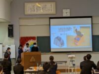 本日は、本校に再度 砺波工業高校の先生をお招きし、完成した文房具スタンドのよさや特徴を伝えるプレゼンテーションを行いました。プレゼンテーションソフトを用いて、魅力を伝えていました。中には、実演しながら機能性を説明したり、班員とのやりとりで聞き手をひきつけたりする工夫もみられました。2年生の生徒の表現力に驚かされました。
