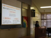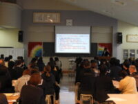高岡市内の3つの私立高校の先生方から各高校について説明がありました。生徒たちは、自分の進路決定に向けて真剣に耳を傾けていました。