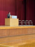 その後、令和8年度の第1学期始業式が行われました。校長先生からは、「居心地のよい学校」「楽しい学校「成長する学校」をみんなでつくっていこう、というお話がありました。
