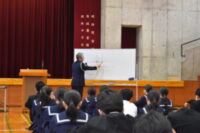 3限には、全校生徒で警察の方から安全な自転車の乗り方についてお話していただきました。