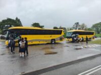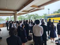 3年生修学旅行 2026年4月27日 に 城端中学校 が投稿 小雨の中でしたが、3年生全員が修学旅行に出発しました。「本物」に触れる3日間、一生の思い出になる修学旅行になることを祈って元気に「行ってきます!」とあいさつをしました。 出発式 バスに乗り込みます!